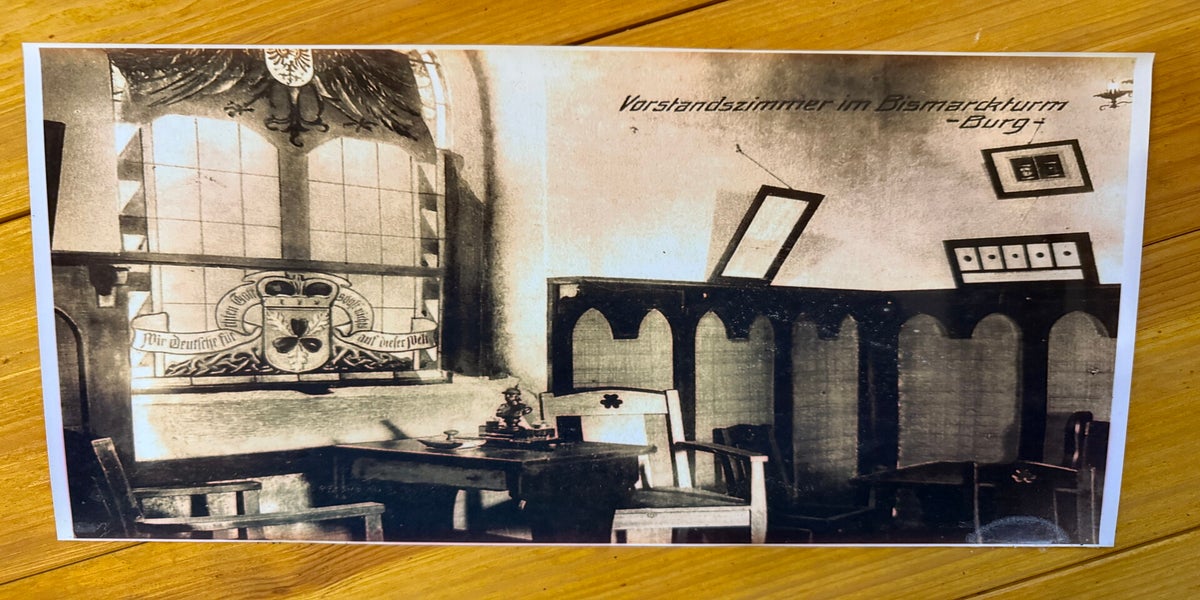 Im Vereinszimmer wurde am 17.08.1906 der Verein „Bismarckturm“ e.V., gegründet, der 250 Mitglieder umfasste und der sich nach der Fertigstellung des Turmes der Instandhaltung des Turmes und der Betreuung der Besucher verpflichtet fühlte. Am 22.03.1907 erfolgte die feierliche Weihe des Turms. Nach dem ersten Weltkrieg und dem Ende der Monarchie setzte der Verfall ein, der auch nicht durch Sanierungsarbeiten um 1933 aufgehalten werden konnte. Eine mehrmals aufgebrochene Tür führte Anfang der siebziger Jahre zum Vermauern von Tür und unteren Fenstern.